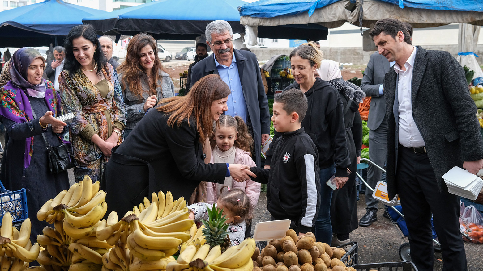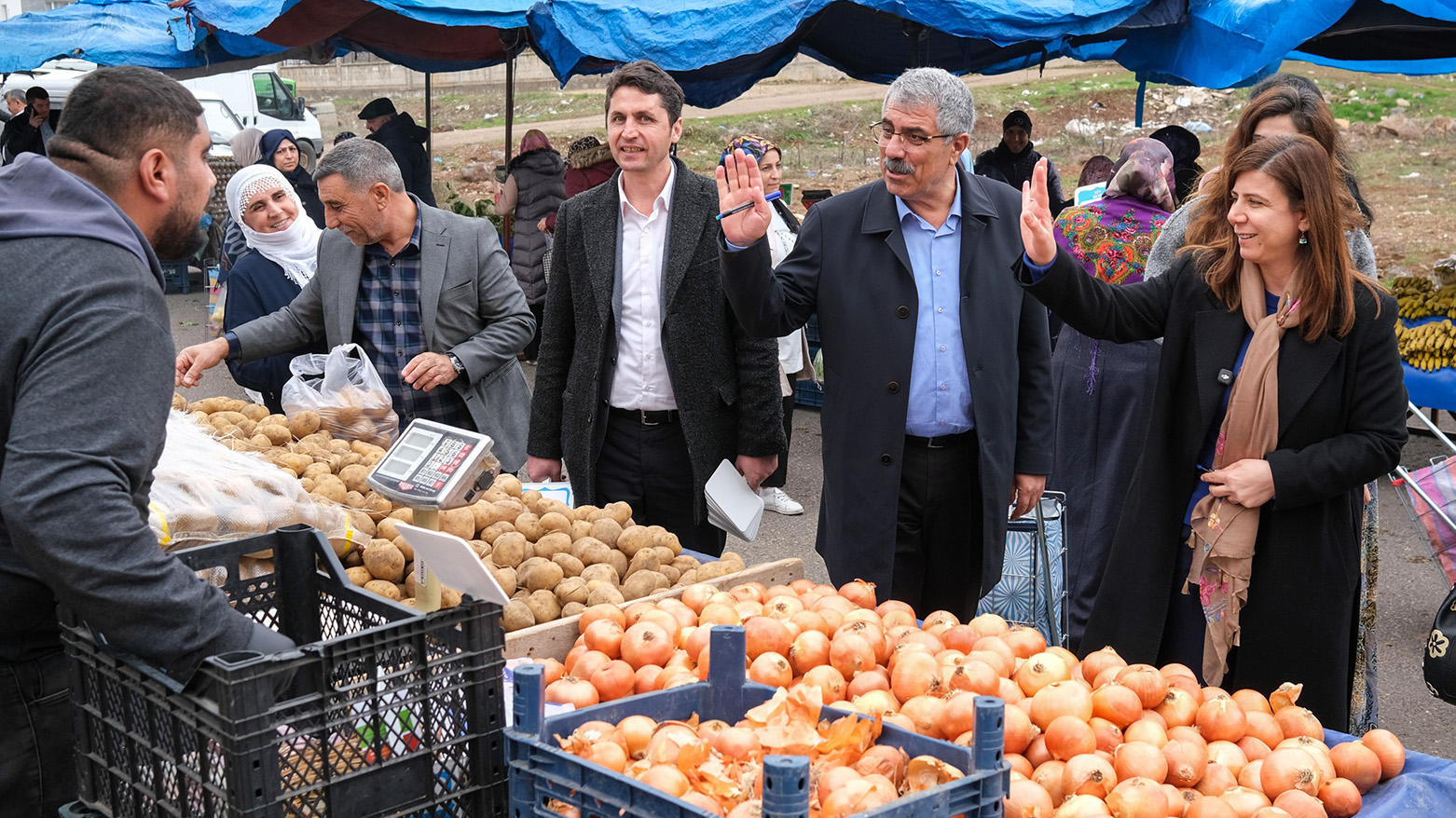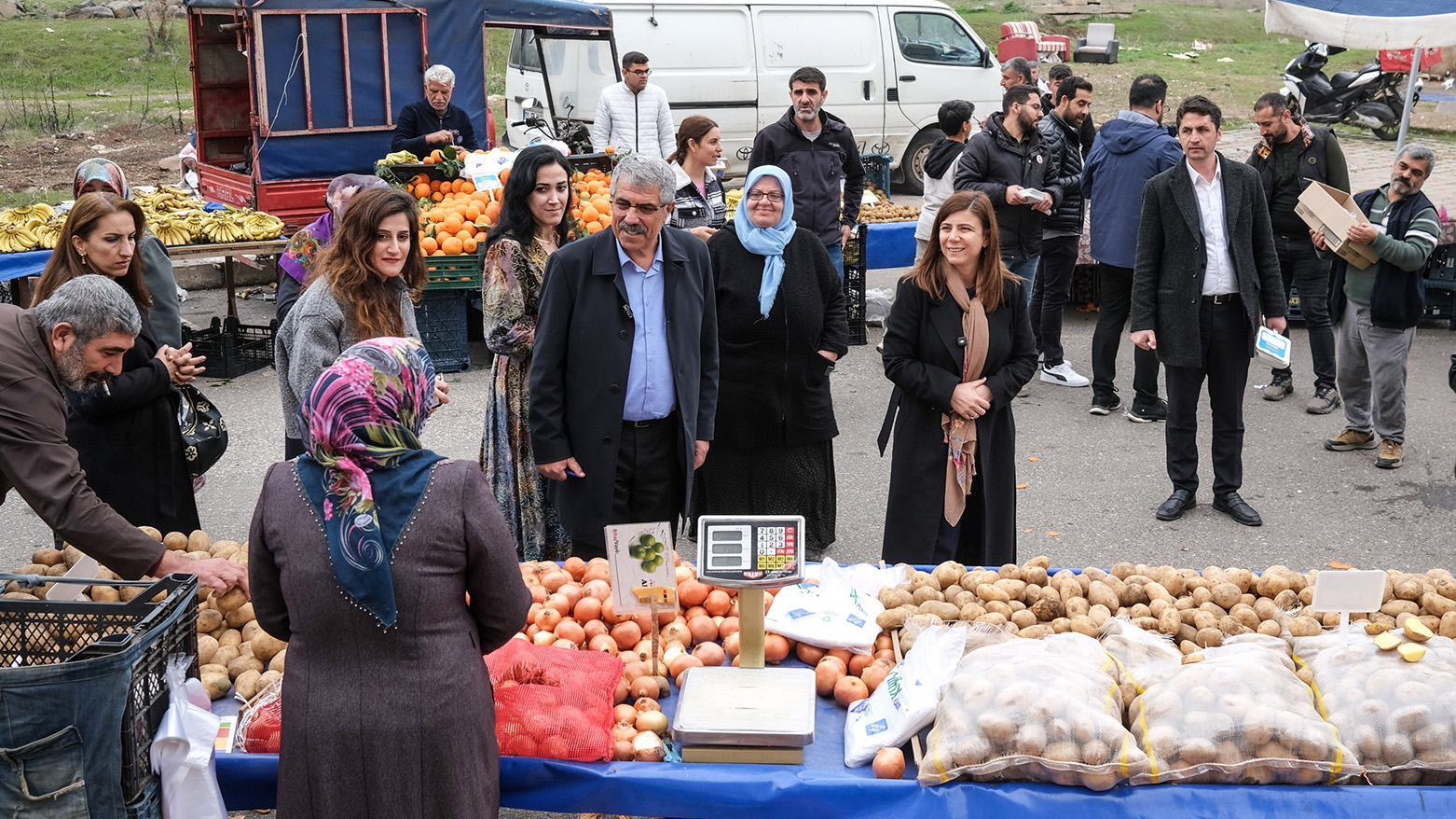 Hevşaredara Bajarê Mezin a Diyarbekirê Serra Bucak, tevî Hevşaredarên Rezanê Leyla Ayaz û Siraç Çelik, di çarçoveya çalakiyên 21’ê Sibatê Roja Zimanê Dayikê ya Cîhanê de serdana bazara taxê ya li ser Kolana Aram Tîgran kir û etîketên ku navên meywe û sewzeyan bi Kurmancî û Kirmanckî (Zazakî) li ser in, li esnafan belav kirin.