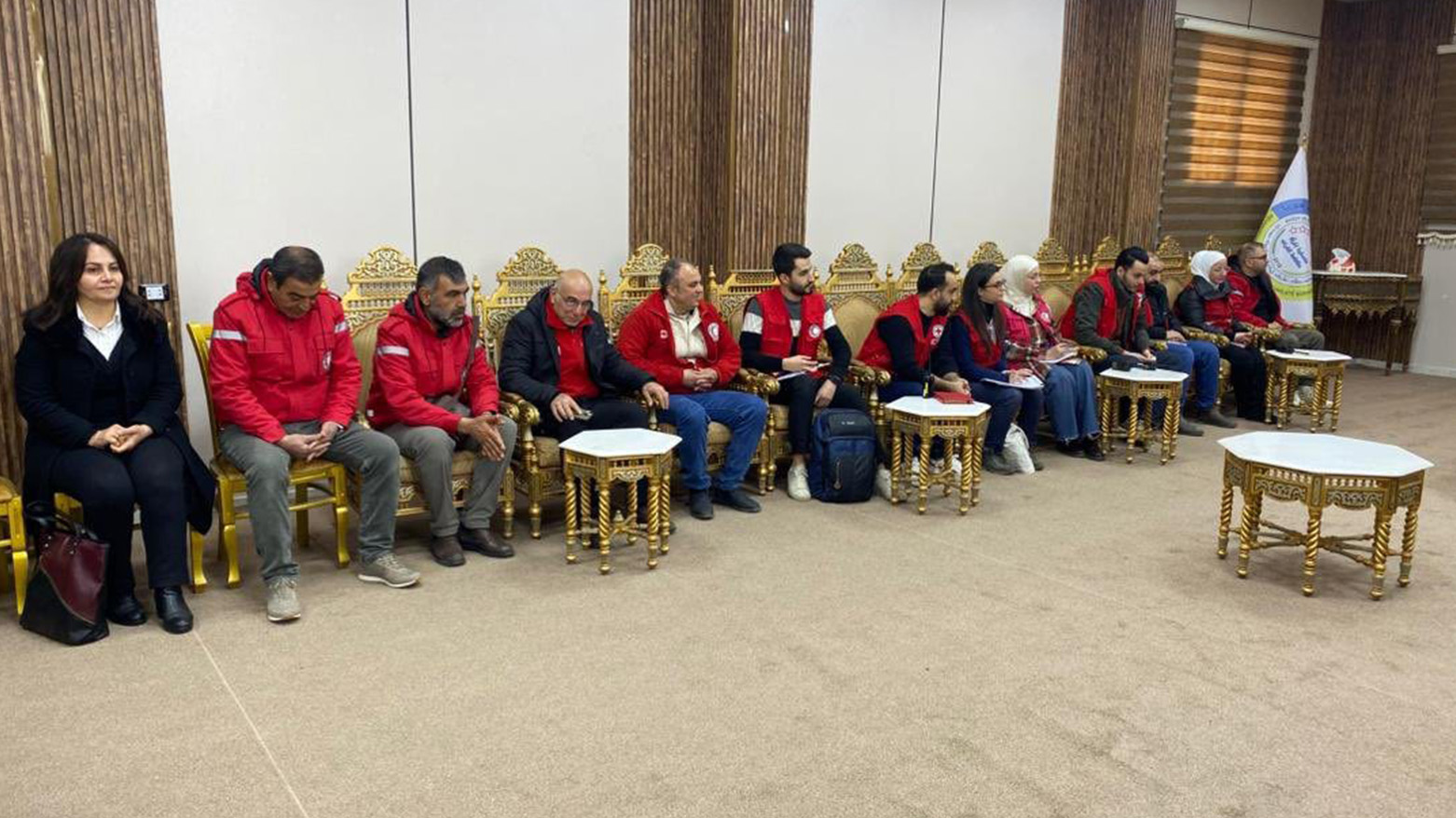 Şanda Xaça Sor ji aliyê Hevserokatiya Rêveberiyê û nûnerên saziyên sivîl û tenduristiyê ve hat pêşwazîkirin. Di nav şandeyê de berpirsên tenduristiyê, tîmên alîkariyê û pisporên parastina sivîlan ji encamên bikaranîna çekan cih digirin.