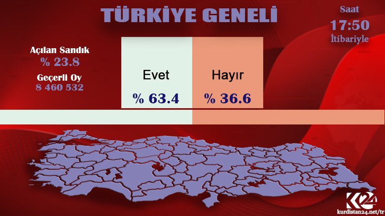 Bu verilere göre, evet oranı, yüzde 63.4, hayır oranı, yüzde 36.6