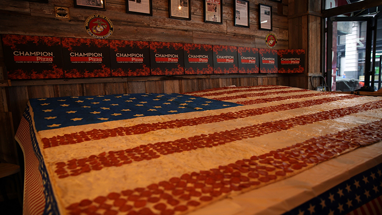 ABD'nin New York kentinde pizza restaurantı işleten "pizza şampiyonu" Kürt pizzacı Hakkı Akdeniz, ABD ulusal "Anma Günü" dolayısıyla Amerika Birleşik Devletleri bayrağı şeklinde dev bir pizza yaptı.