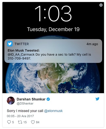 Musk'ın telefon numarasını değiştirmesi gerekeceği yorumları yapılırken Silikon Vadisi'nde sanal gerçeklik alanında çalışan bir mühendis olan Darshan Shankar, "Telefonunu açamadığım için özür dilerim" tweetini attı.
