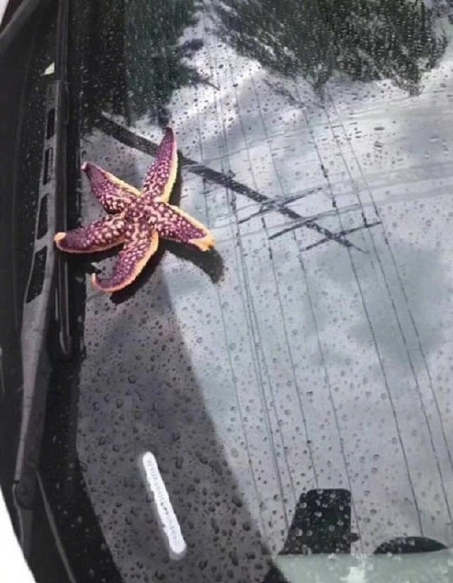 Fırtınanın denizden çekerek gökyüzüne çıkardığı denizyıldızı, karides ve benzeri deniz canlıları insanların ve araçların üzerine düştü.