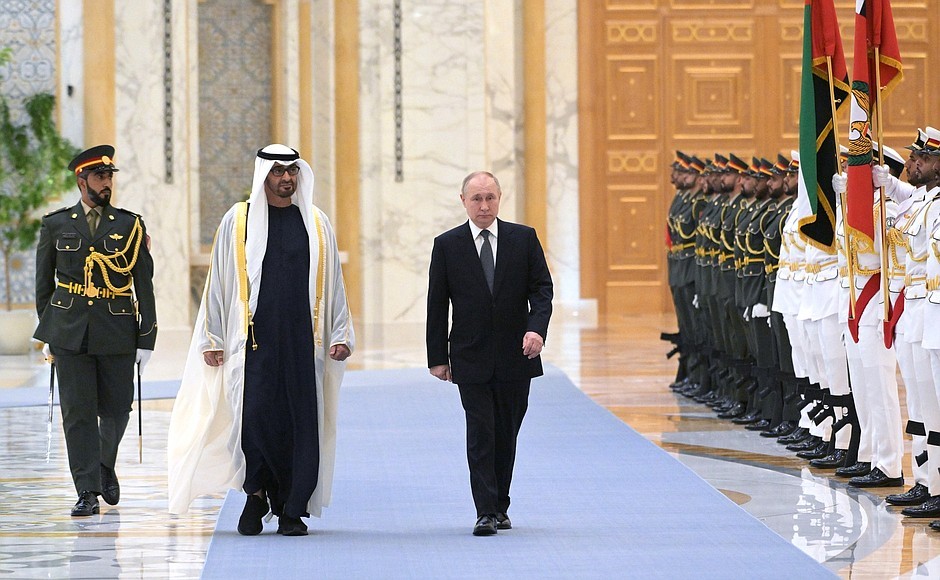 Rusya Devlet Başkanı Vladimir Putin, Birleşik Arap Emirlikleri'nin (BAE) başkenti Abu Dabi'de görkemli bir törenle karşılandıktan sonra BAE Devlet Başkanı Şeyh Muhammed bin Zayed Al Nahyan ile görüştü.