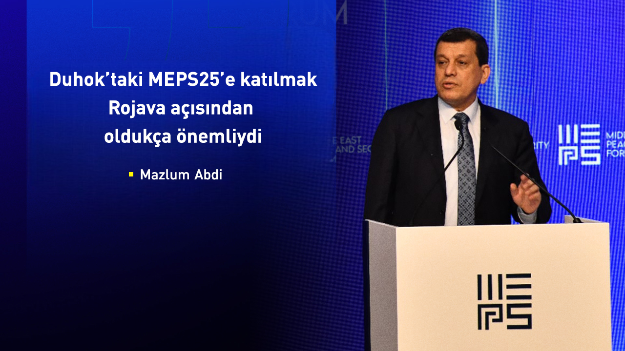 Suriye Demokratik Güçleri (SDG) Genel Komutanı Mazlum Abdi, bu dönemde Orta Doğu Barış ve Güvenlik Forumu’na (MEPS2025) katılmak Rojava açısından oldukça önemli olduğunu söyledi.